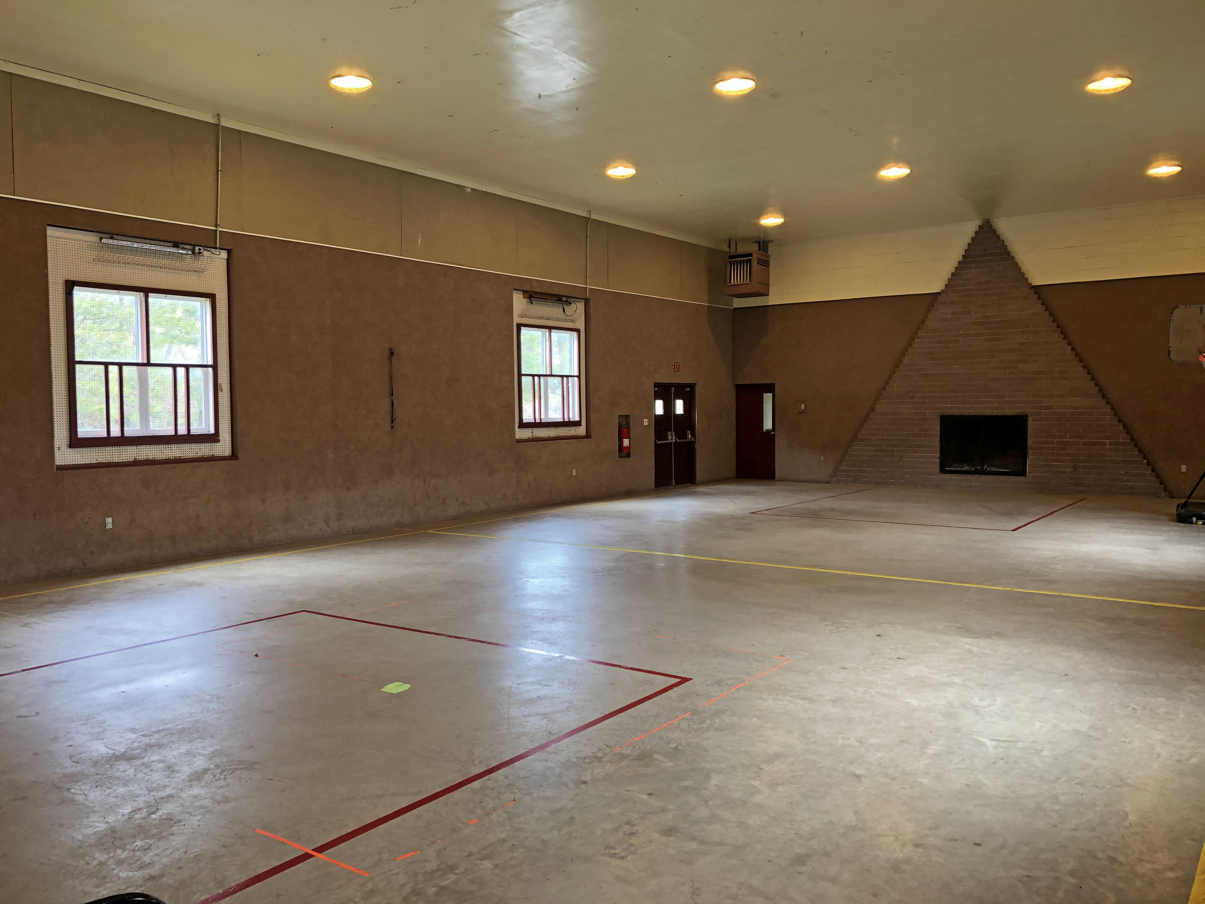 These buildings provide shelter during inclement weather and can be used for a variety of activities. Larger groups sometime use the gym as a meeting room. This is ideal for groups with more then 90 people. The gym is heated, but does not have air conditioning. Large windows are available for circulation.